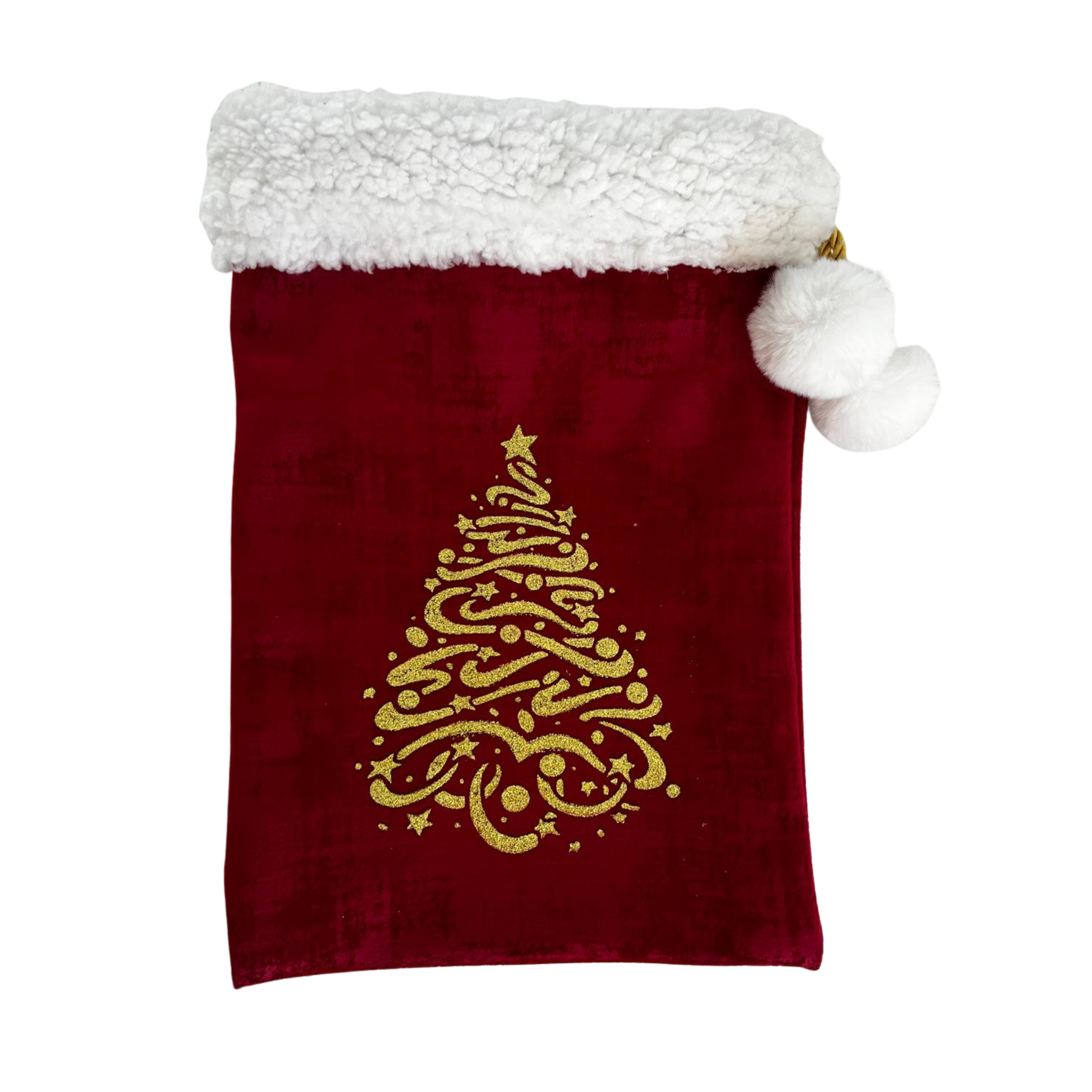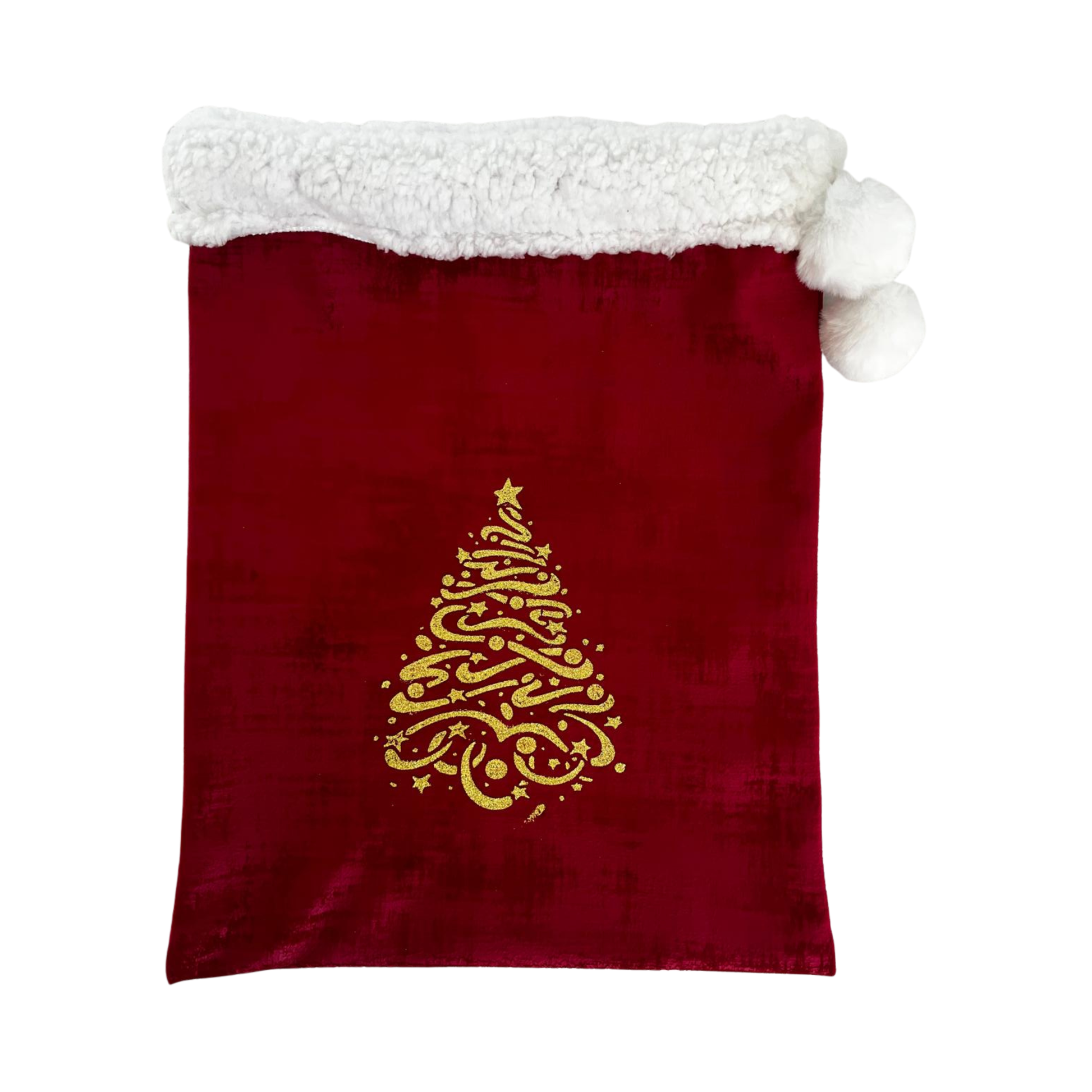 Ce sac en tissu raffiné, orné d’un velours rouge profond et de motifs dorés scintillants, se transforme en un véritable écrin pour vos présents. Réutilisable d’année en année, il offre une alternative durable et élégante au papier cadeau jetable : pratique, chic et zéro déchet.
